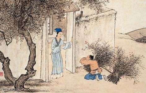 蔡顺,汉代汝南(今属河南)人,少年丧父,事母甚孝。当时正值王莽之乱,又遇饥荒,柴米昂贵,只得拾桑葚母子充饥。一天,巧遇赤眉军,义军士兵厉声问道:“为什么把红色的桑葚和黑色的桑葚分开装在两个篓子里?”蔡顺回答说:“黑色的桑葚供老母食用,红色的桑葚留给自己吃。”赤眉军怜悯他的孝心,送给他三斗白米,一头牛,带回去供奉他的母亲,以示敬意。