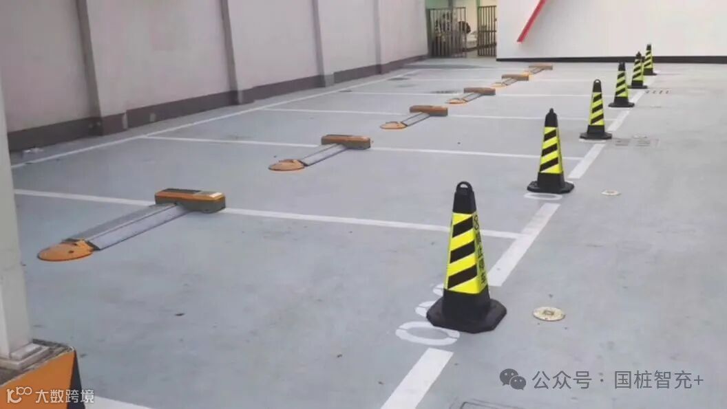 第二种方案:地锁。对于大部分充电站来说,地锁是最常见的解决占位的方案。无论是普通快充站,还是高端品牌超充站,都能看到地锁的身影。车主通过扫码,地锁下降,即可正常入库充电。基础的地锁方案最突出的特性就是价格低,但其隐患也不小,不少地锁稳定性较差,容易被车撞倒、撞坏,如此也就失去了使用价值,也会导致电车受损。强化版的地锁价格有点高,很难大规模推广使用。