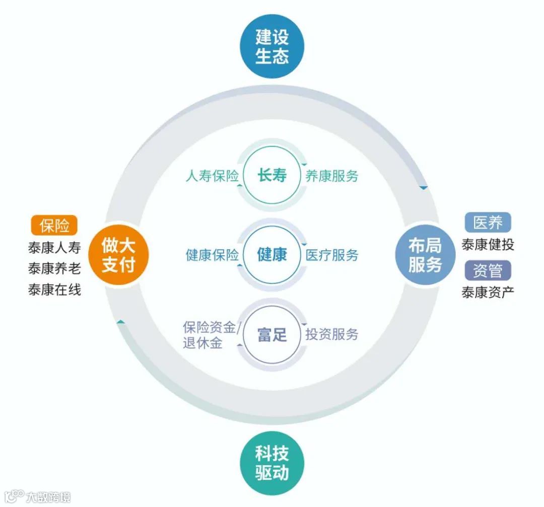 所以在这个基础上,泰康也有了新的使命和愿景——成为一家“面向大健康产业的金融保险服务集团,让人们更长寿、更健康、更富足”。
