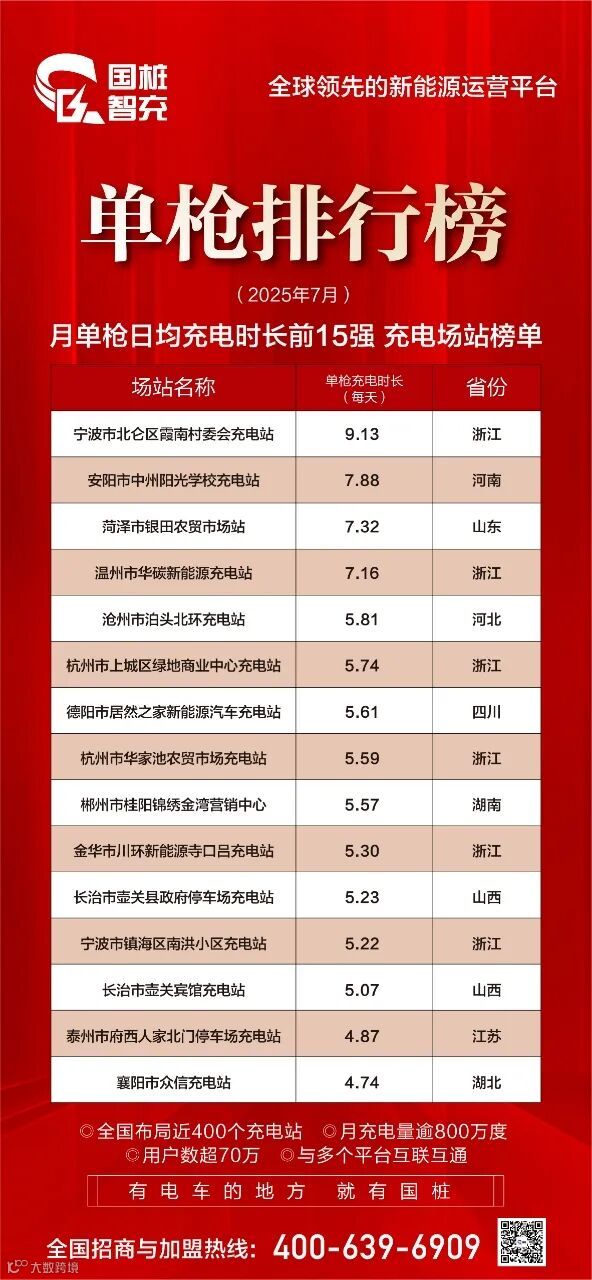 导读:7月充电量位列前五名的场站是:西安市滋水大桥充电站、温州市鸿瑞西三街充电站、兴义市安聚源充电站、温州市华碳新能