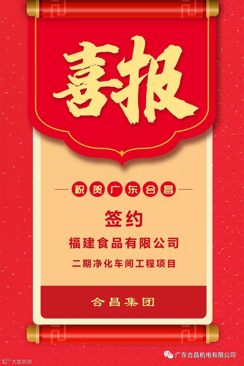 广东合昌机电有限公司在2019年12月上旬承接《福建食品有限公司二期净化车间工程项目》,本项目已正式签订合同!!!