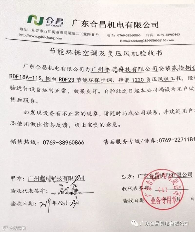 环保空调工程完工后涉及到最重要的一个点那就是降温效果验收,广东合昌广州电子科技车间安装36台环保空调及4台负压风机工程项目于11月上旬完工,完工时经测试检验试运行一切正常,为了让客户满意体验运行一个月后,客户主动要求同我们签“验收书”。