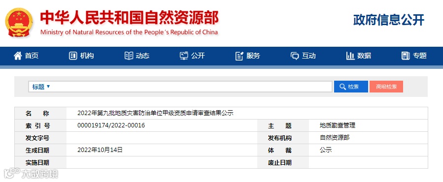 根据《地质灾害防治条例》(国务院令第394号)和《地质灾害危险性评估单位资质管理办法》(国土资源部令第29号)、《地质灾害治理工程勘查设计施工单位资质管理办法》(国土资源部令第30号)、《地质灾害治理工程监理单位资质管理办法》(国土资源部令第31号)、《国土资源部关于修改〈地质灾害危险性评估单位资质管理办法〉等5部规章的决定》(国土资源部令第62号)、《自然资源部关于第一批废止和修改的部门规章的决定》(自然资源部令第5号),现将2022年第九批地质灾害防治单位甲级资质申请审查结果及单位资质有关申报信息等予以公示,公示期自发布之日起7天。审查中,有部分单位申报材料需核查,本次暂不予以公示。