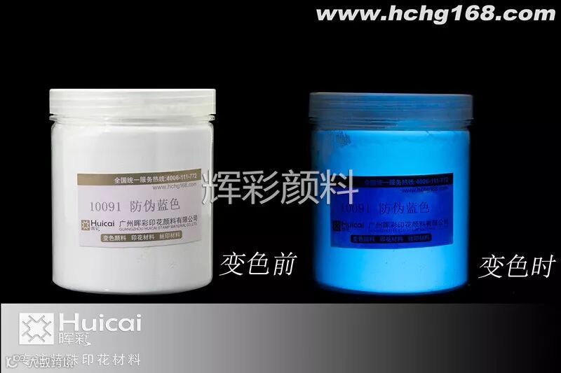 防伪颜料在紫外线照射下会呈现耀眼萤光,广泛用于防伪,科技含量高、色彩隐蔽性好。