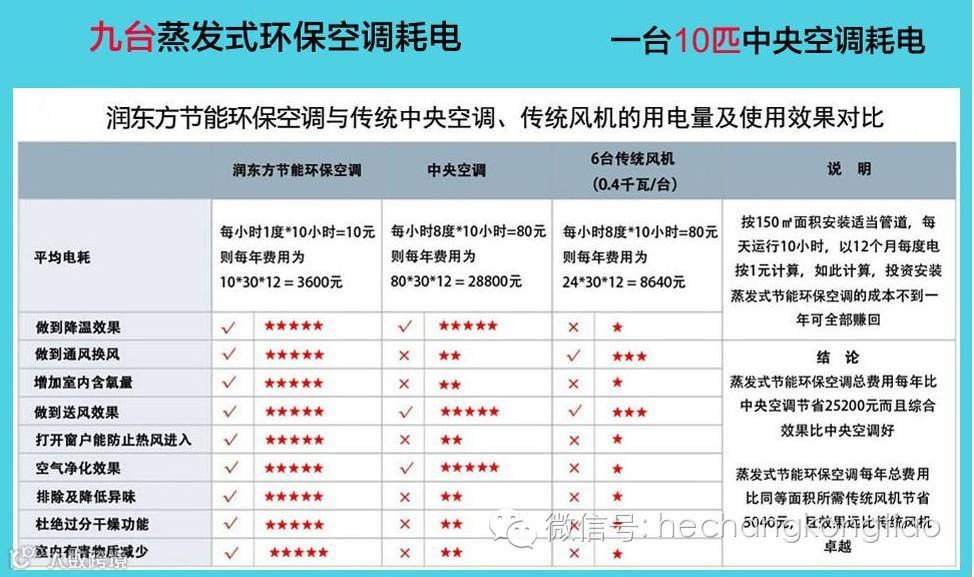 据了解,蒸发式冷气机不同于传统空调,用水作为制冷剂,利用水的蒸发提供冷量,与机械制冷相比,蒸发制冷可节省80%以上的电能,节能效果显著。不使用氟利昂,不对外排放二氧化碳,这与当下所倡导的节能减排、绿色低碳生活是十分吻合的。
