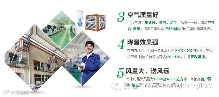 蒸发式冷气机(环保空调)的适用范围:人员密集或使用时间短暂且需要快速降温的场所,