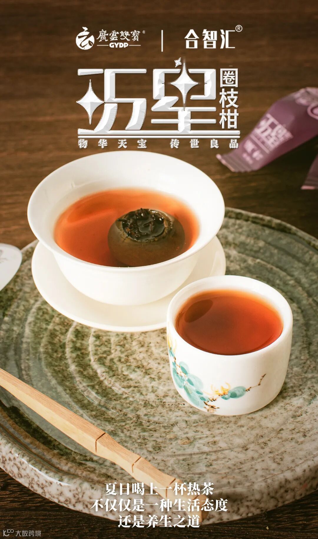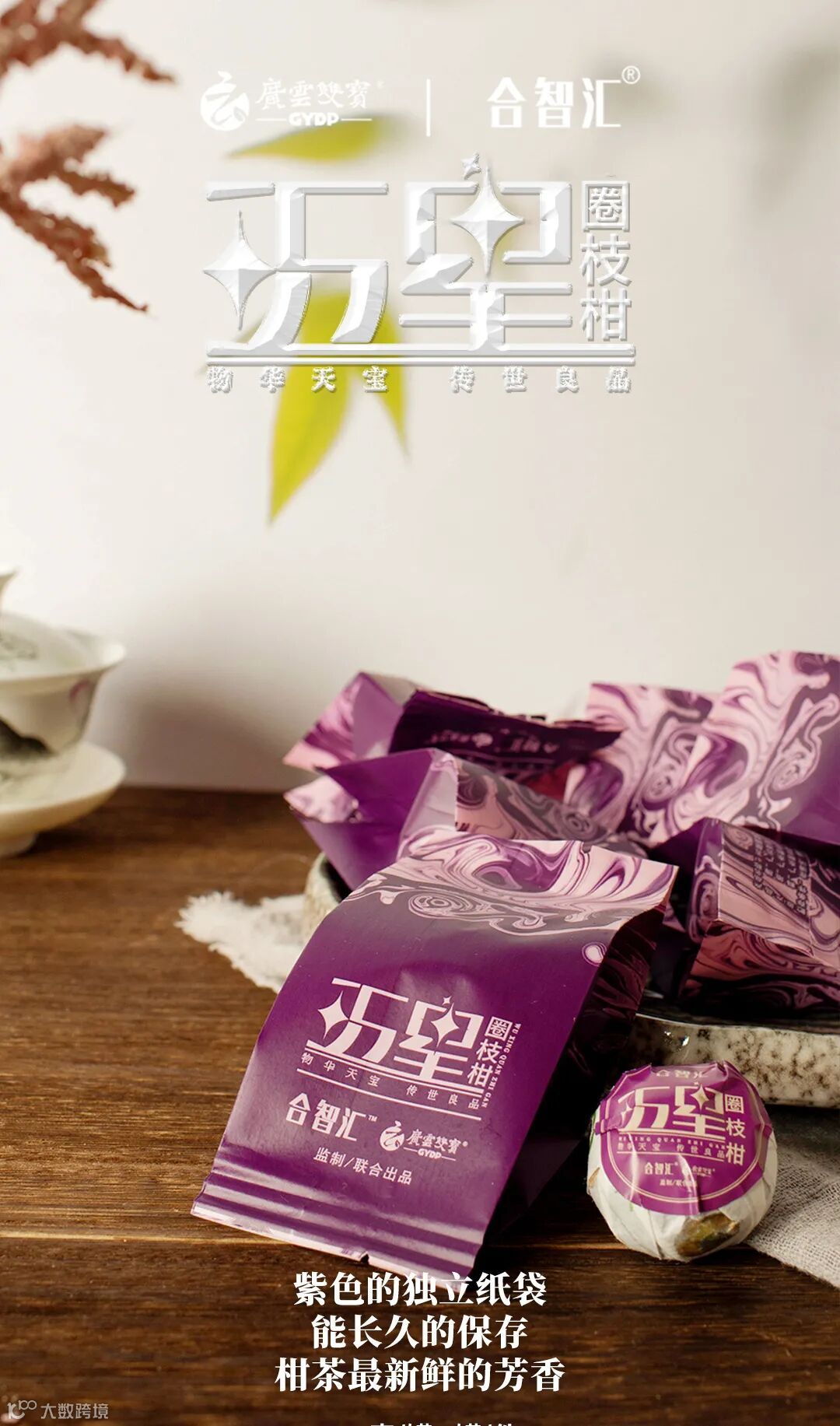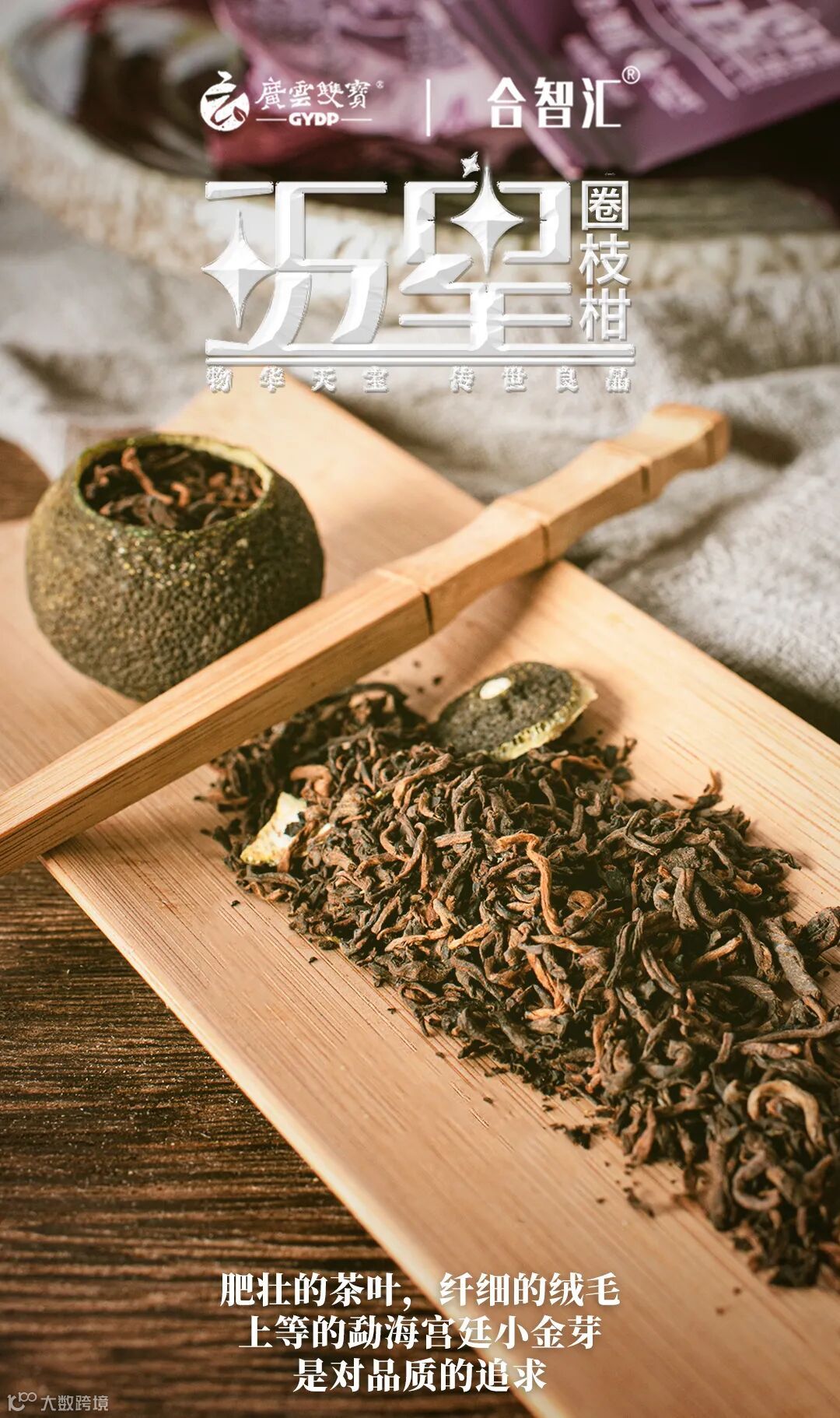 在高温冲泡下焕发出圈枝柑特殊迷人的香气,让人身心愉悦,有舒肝解郁的功效。配上优质6年陈熟茶温和养胃,醇厚浓稠,滋味丰富耐泡!