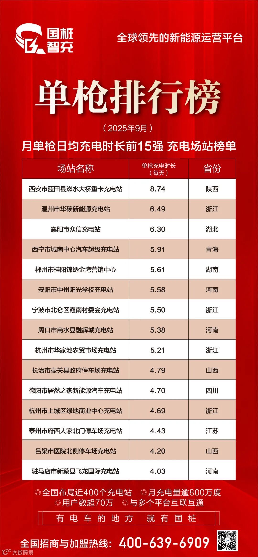 喜报|9月,国桩智充充电量达到630.98万度!