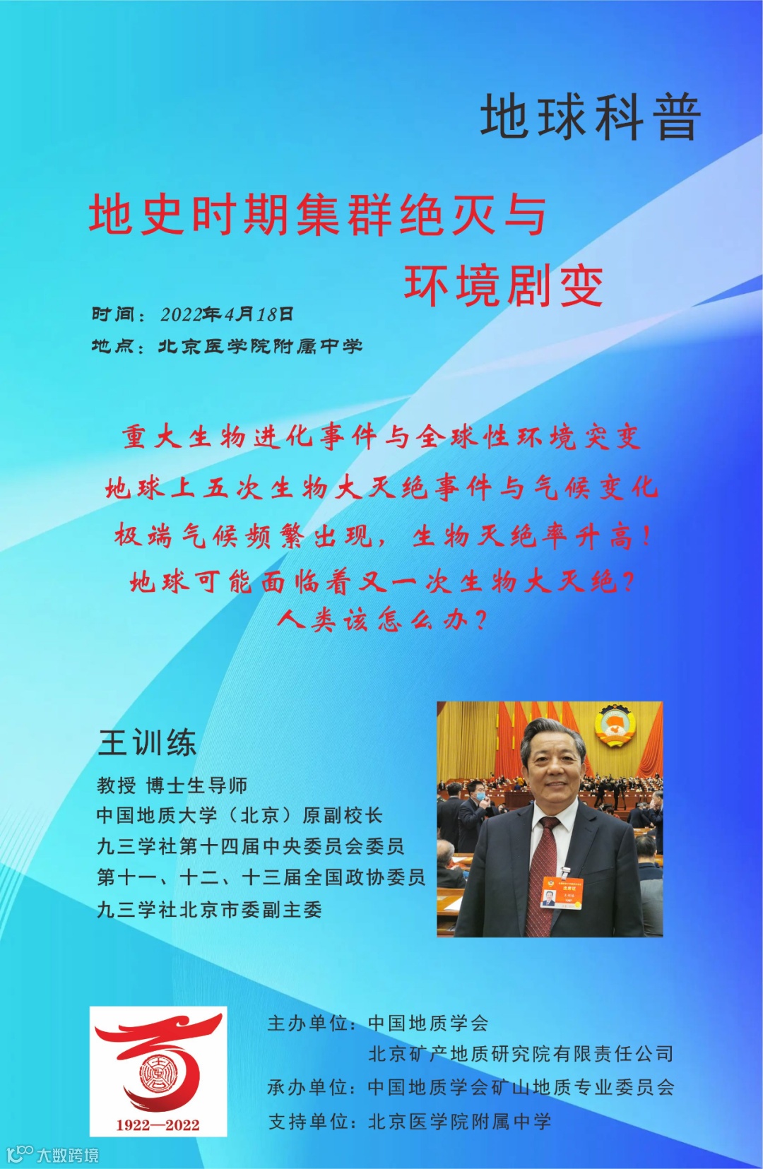 4月22日是第53个世界地球日,根据中国科协、自然资源部有关工作部署,中国地质学会联合相关单位举办系列纪念活动。从4月16日开始,将联合新华网、人民网、光明网、学习强国、中国青年报、中国科技网、科普中国、哔哩哔哩、今日头条、腾讯新闻、地调科普、中国数字科技馆、百家号、头条号等新闻客户端平台,以及北京医学院附属中学现场推出3场科普直播和现场讲座。