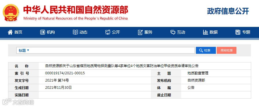 自然资源部关于山东省煤田地质局物探