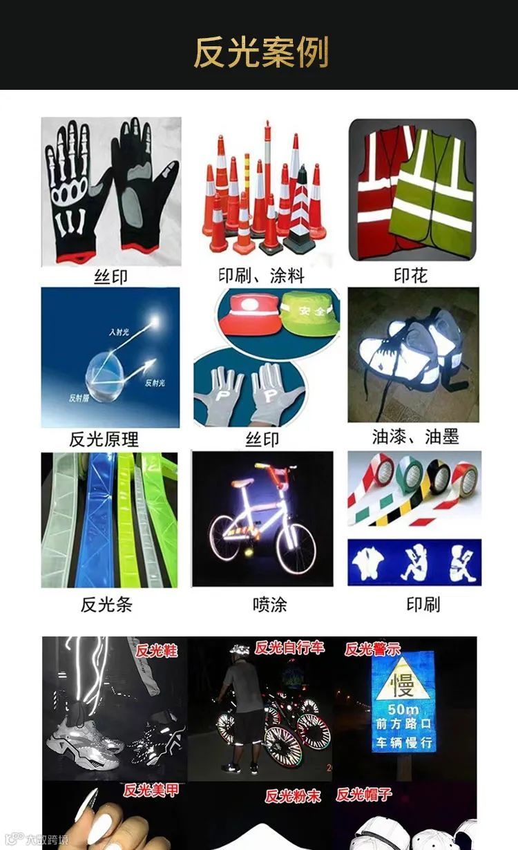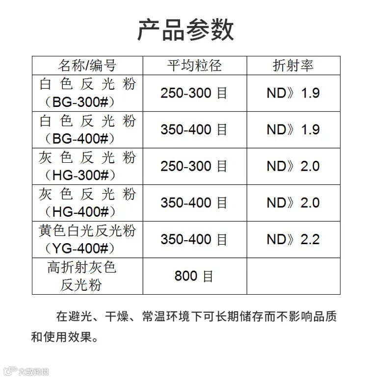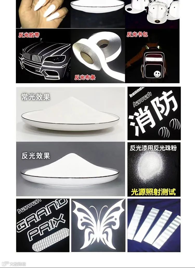 反光粉,英文名为Refractive Powder,由一种玻璃为主粉体材料生产而成,该产品可以直接加入涂料或树脂中,使产品具有回归反光效果,在各种复杂形状的表面上都可以使用。