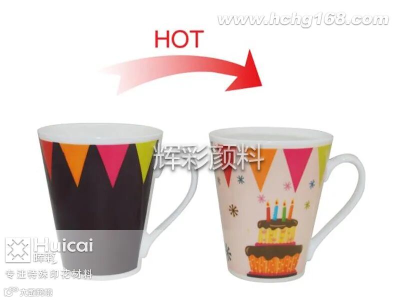 相信大家以前在购买礼品的时候都有购买过一种杯子,这种杯子在平时看的话是比较平平无奇的,但是当我们注上热水的时候,可以发现它会由一种颜色变化为另外一种颜色或者是显示特定的图案或者文字。很多人感叹这种神奇的颜色变化,但不知其原理。其实温变颜料厂家告诉大家,这种创意并不难,在杯子生产的时候其实是加入了温变粉,这种温变粉会随着温度的升高而由透明变为指定的颜色,所以使得杯子能够发生这种神奇的变色形式,当然这也只是温变颜料的一种变色方式之一。
