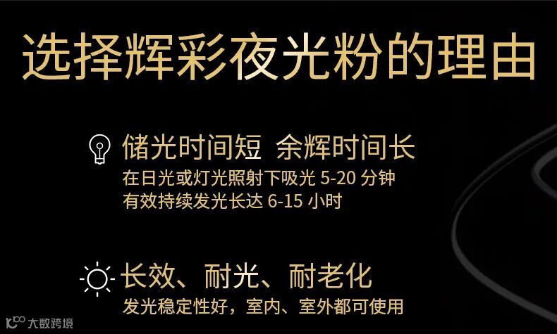 你见过会发光的材料吗?相信大家都见过,比如夜光粉和反光粉这两的种材料都是会发光的材料,但是两种发光的方式大有不同,一种是吸收光,然后到黑暗的地方自动发光,反光粉说官方一点,它是不会发光的,只是有把光线反射会光源处的特点,所以也算一种发光材料。今天讲的就是#辉彩 长效超亮夜光粉