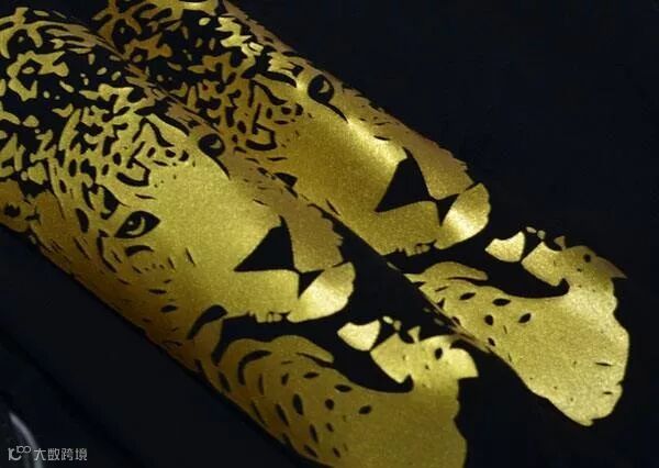 3.仿烫金浆印花后的洗水牢度大大优越于烫金浆转烫金箔印花。
