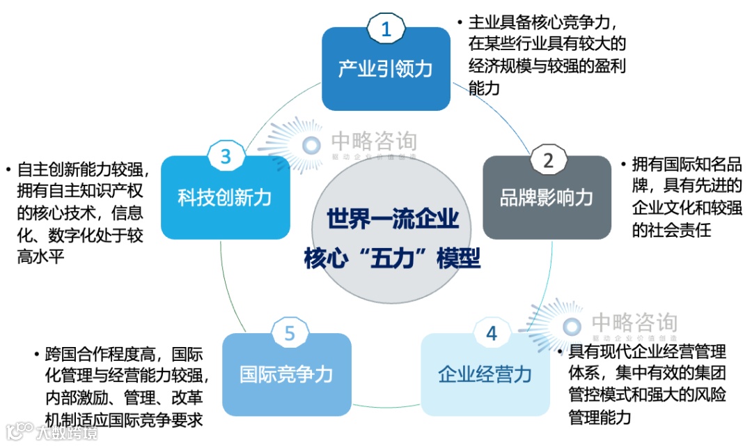 5.核心能力:要切实增强核心功能和提高核心竞争力,持续面向市场塑造独特竞争优势,增强战略支撑托底能力;对标世界一流企业,打造“产业引领力、品牌影响力、科技创新力、企业经营力和国际竞争力”核心五力。