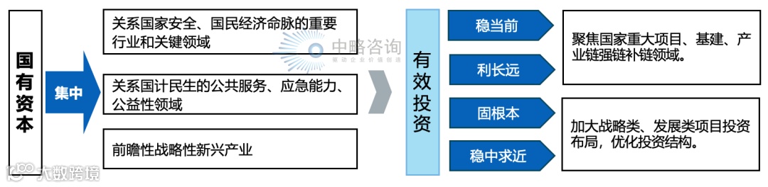 3.发展方向:持续推动国有资本“三个集中”。明确国有资本重点投资领域和方向。推动国有资本向关系国家安全、国民经济命脉的重要行业和关键领域集中,向关系国计民生的公共服务、应急能力、公益性领域等集中,向前瞻性战略性新兴产业集中。