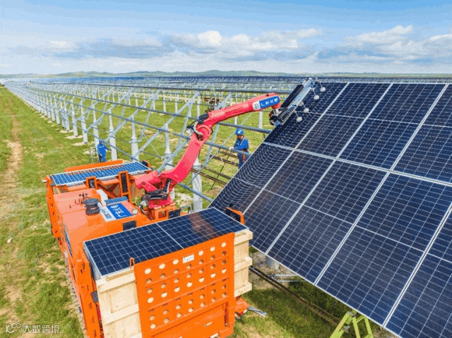 9月,肩负“绿电赋能、帮扶利民、生态修复”三重使命的锡林郭勒盟正镶白旗20万千瓦防沙治沙和风电光伏一体化光伏项目,首次引入光伏智能铺装机器人,以“光伏+生态治理”模式实现清洁能源开发与沙化土地修复双赢,带动地方绿色增收、助力民生改善。