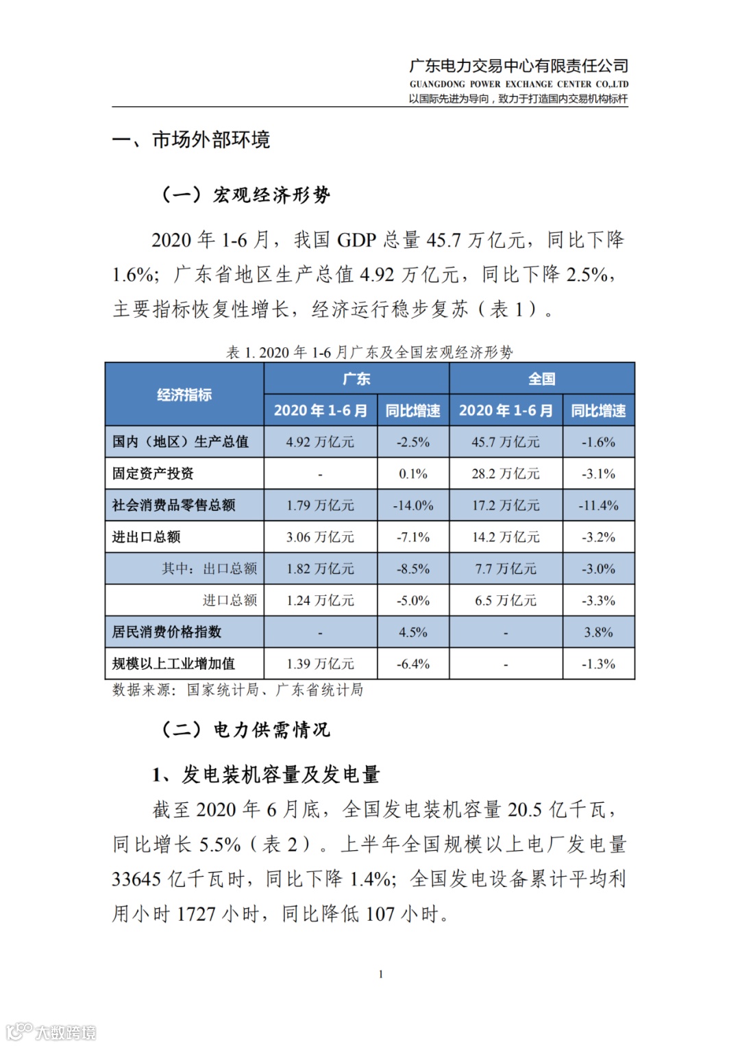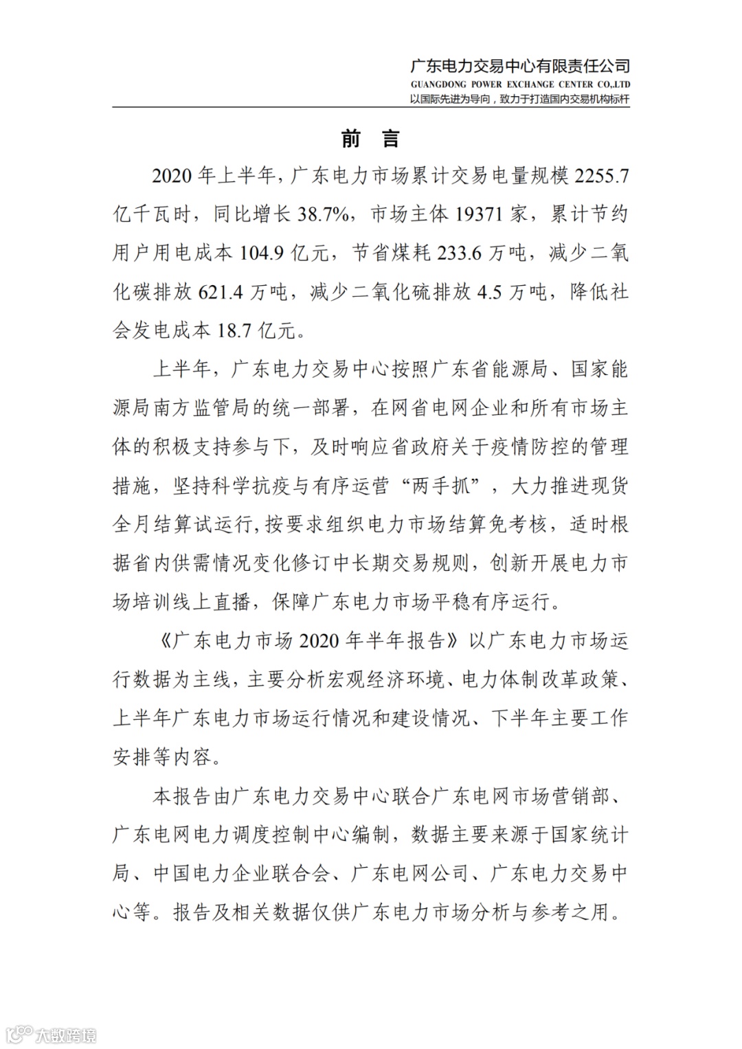 近日,广东电力交易中心对广东电力市场2020年上半年运营情况进行了分析,编制了《广东电力市场2020年半年报告》,供广东电力市场分析与参考。