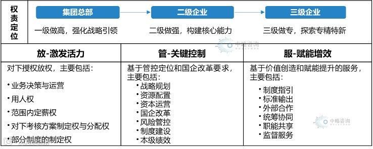 二是上级要向下级制定放管服结合的授权清单,将经营权责明确化。一方面要突出差异化管控要求,分类对“双百企业”、“启航企业”“科改示范企业”、两类公司、上市公司等不同类型企业实施精准授权放权;另一方面要完善国资监管,按照事前规范制度、事中加强监控、事后强化问责的思路,全面梳理国资监管职责,调整优化监管方式和手段;