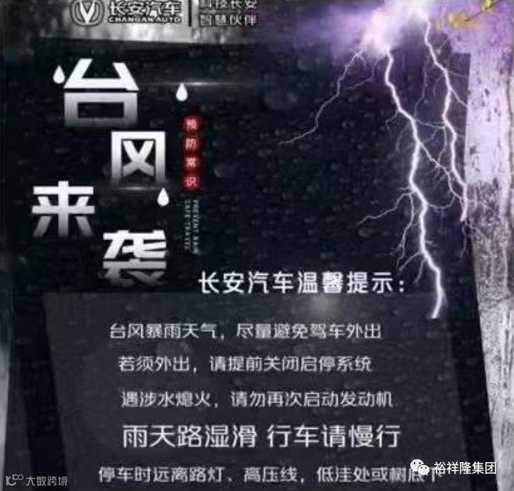 【深圳突发事件预警】市三防指挥部提醒:我市已发布台风紧急动员令,1日16时起停工停业停市,19时起停运,请市民非必要不外出,并相互提醒。如有特殊情况需要外出,行车过程中一定要注意安全,如需帮助可随时联系裕祥隆集团各大门店,24小时有值班人员竭诚为您服务!