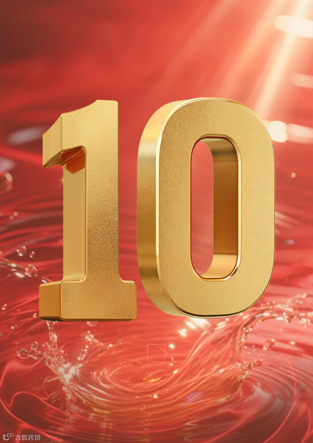 数字“10”造型:采用金色渐变效果,既直观体现“十周年”的时间节点,又以金属质感传递行业的科技感与专业性。数字形态富有动感,象征行业十年间的蓬勃发展与持续前进。