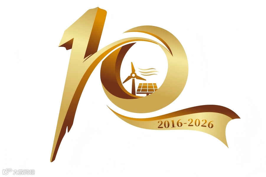 该标志围绕新能源产业10周年纪念主题展开设计,融合多种元素以传递产业特质与纪念意义: