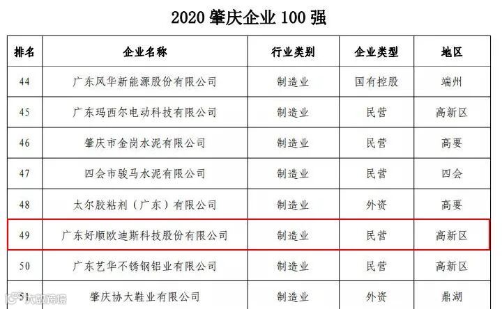 肇庆企业100强