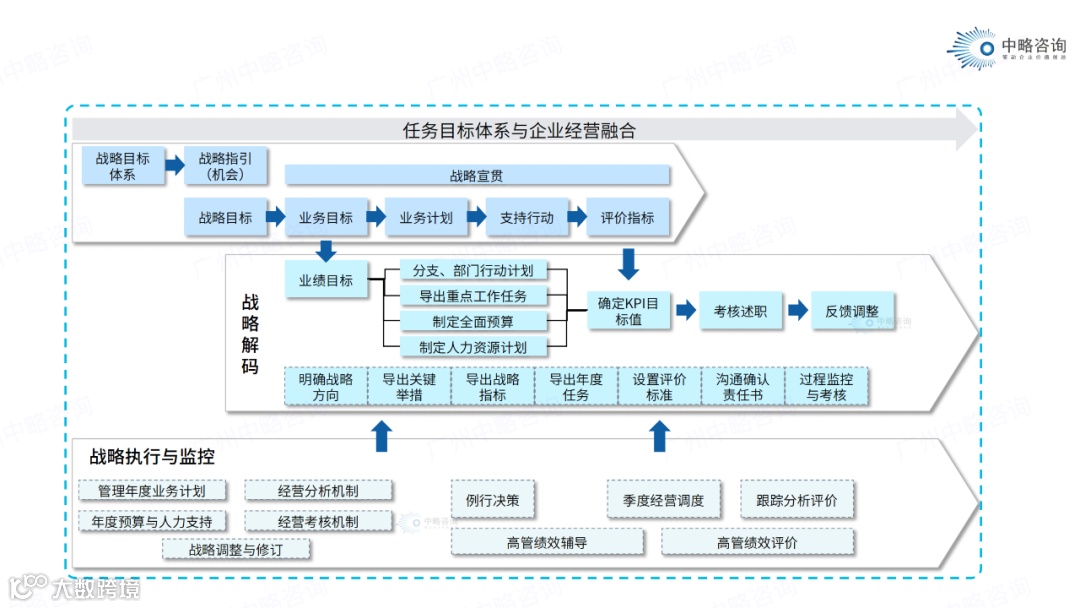 (4)战略解码缺失:导致“战略绩效”没能与下属组织绩效、岗位绩效建立起压力传导机制,战略目标达成责任与绩效考核评价脱节。