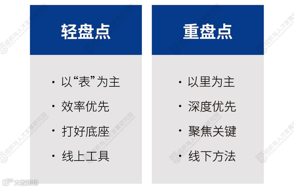 在做轻盘点时就是效率优先,先得有一个办法初步摸清这个刚组建起来的数万人组织的家底,才能为后续的人才管理夯实基础。