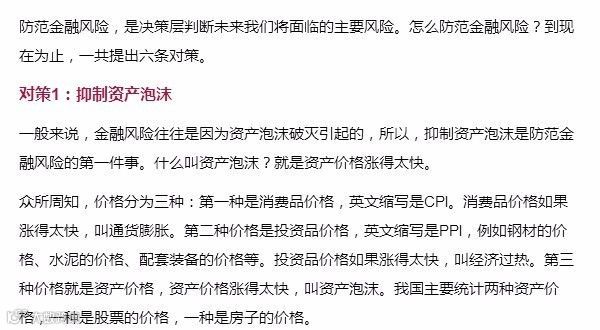 防范金融风险要做的第一件事就是抑制资产泡沫,现在正在全面推进。