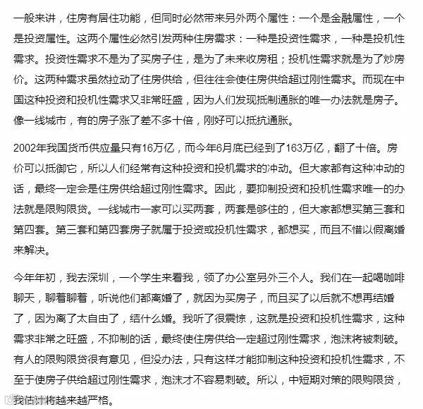 比如,经济中心不属于首都功能,大量企业得迁出北京,不是一个两个企业,我估计央企总部大部分得迁走,迁向雄安新区。再比如,北京不是教育中心,不少大学得搬家,得迁。北大清华不会迁,但是扩大规模不行,要扩大规模可以在外地办分校。北大最近在深圳办分校,北大医学部准备迁往雄安新区。根据最近公布的具体方案,不少大学得迁出北京。又比如,北京不是医疗中心,现在北京看病的人85%是外地人,分解医疗资源,明确北京的名医院在北京都不能再扩大规模了,要扩大可以在外地办分院。这些非首都功能都将离开北京,已经正式公布了要离开的单位,包括一些行政事业单位和金融机构。这么多功能走了,还有多少住房需求,这些需求的降低,房价当然就得以控制。