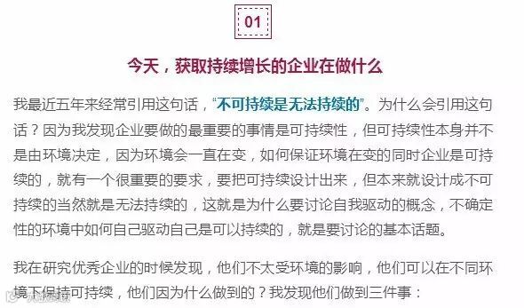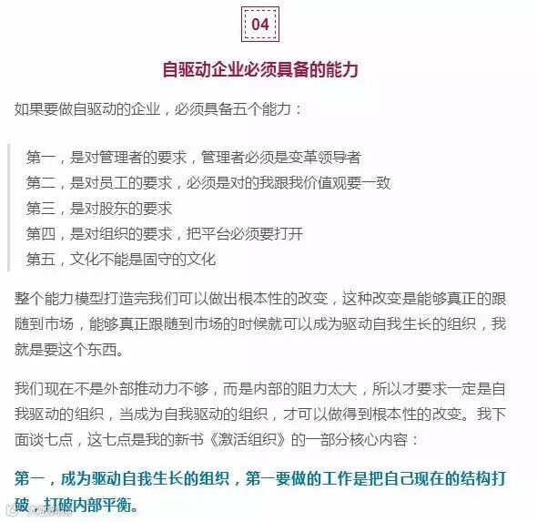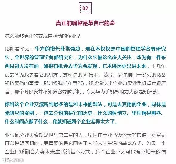 优秀企业不太受环境的影响,可以在不同环境下保持可持续增长,比如华为、亚马逊,他们不讲历史只讲未来,关键就在于自我驱动。而成为一个自我驱动的企业,真正要解决的是什么?