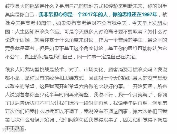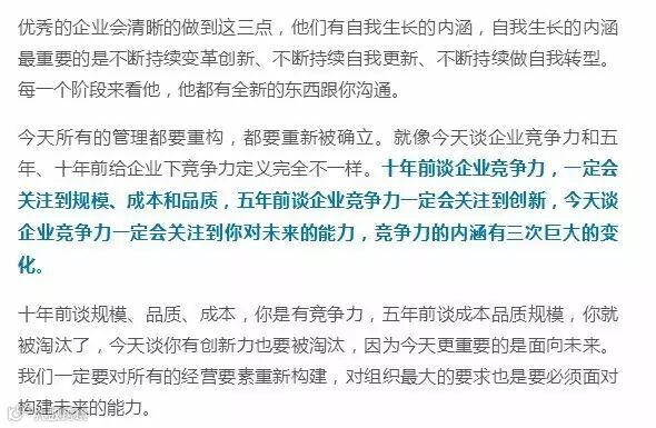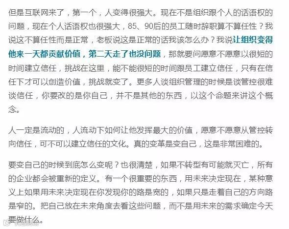 “我非常担心你是一个2017年的人,你的思维还在1997年。”北京大学国家发展研究院教授、北大BiMBA商学院院长陈春花在近期的公开演讲中,对企业如何获得可持续性、成为一个自我驱动型企业需要具备的能力等问题作出了详细阐述。