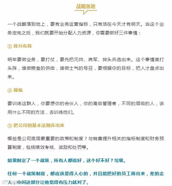 如果你的公司超过100个人,一定要开三个会:业务战略会、财务预算会和人才盘点会。这也是阿里年底开集团会的时候,最重要的三件事情,叫人、财、务的战略会议。
