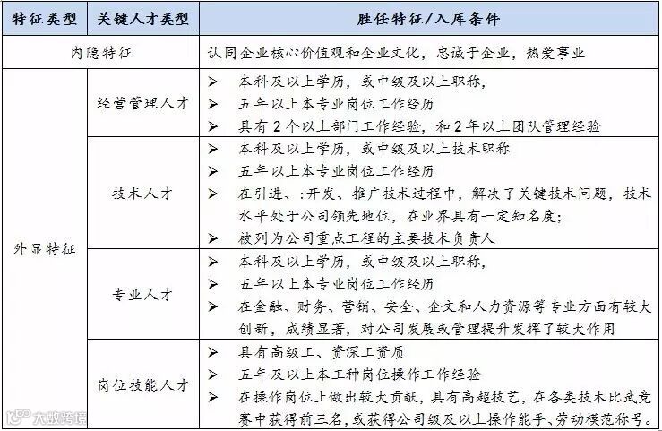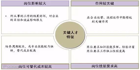 企业关键人才必须符合如下特征:企业战略发展中急需、替代成本大、专业技能要求高、目前市场紧缺,是可以支撑公司战略发展,主持公司重大项目,掌握公司核心技术,解决公司重大和疑难问题等能力的人才。