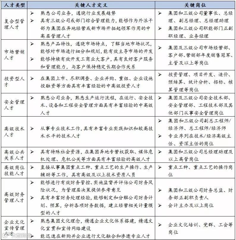 关键人才类型及关键岗位定义表
