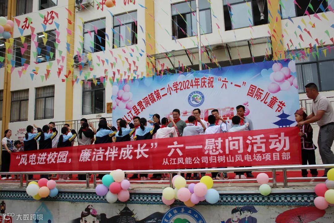 5月30日,粤黔新能源分公司从江县归树山项目部到项目所在地贯洞镇第二小学开展“风电进校园,廉洁伴成长”六一慰问活动。