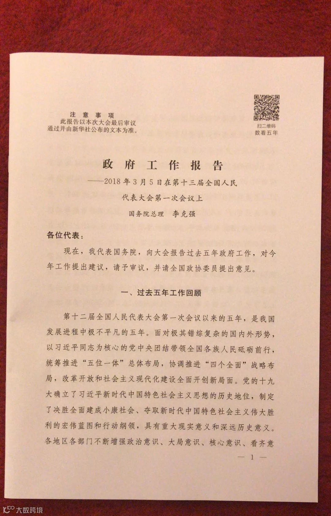 今年的政府工作报告首页上,又出现了一个小小的二维码。