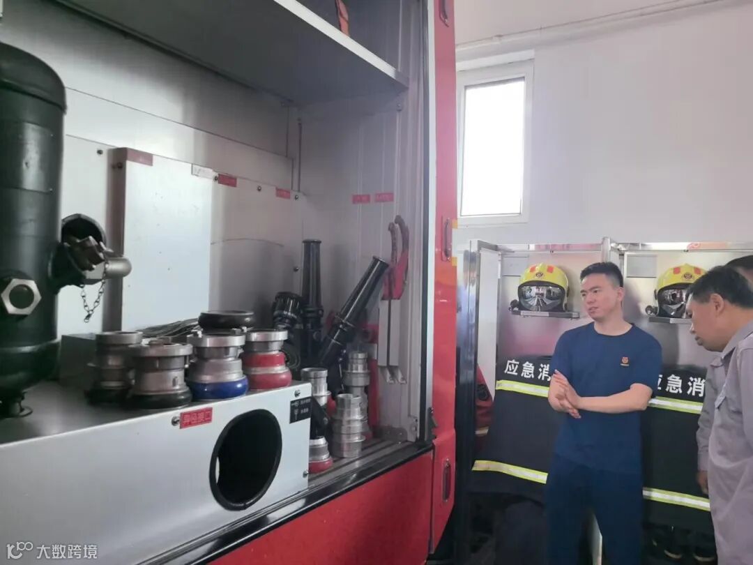 活动开始后,大家依次参观消防站日常的执勤车辆、技能训练、指战员内务和办公生活区域。期间,教导员利用通俗易懂的语言详细讲解了水罐车、泡沫车、抢险救援车及装备器材(灭火防护服、空气呼吸器、水枪、水带等)的使用方法和功能用途。