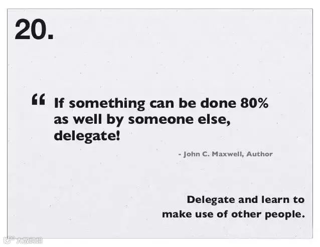 20、授权并擅用他人的力量。——君子善假于物(人)也,如果某件事其他人也可以做到八成,那就给他做!