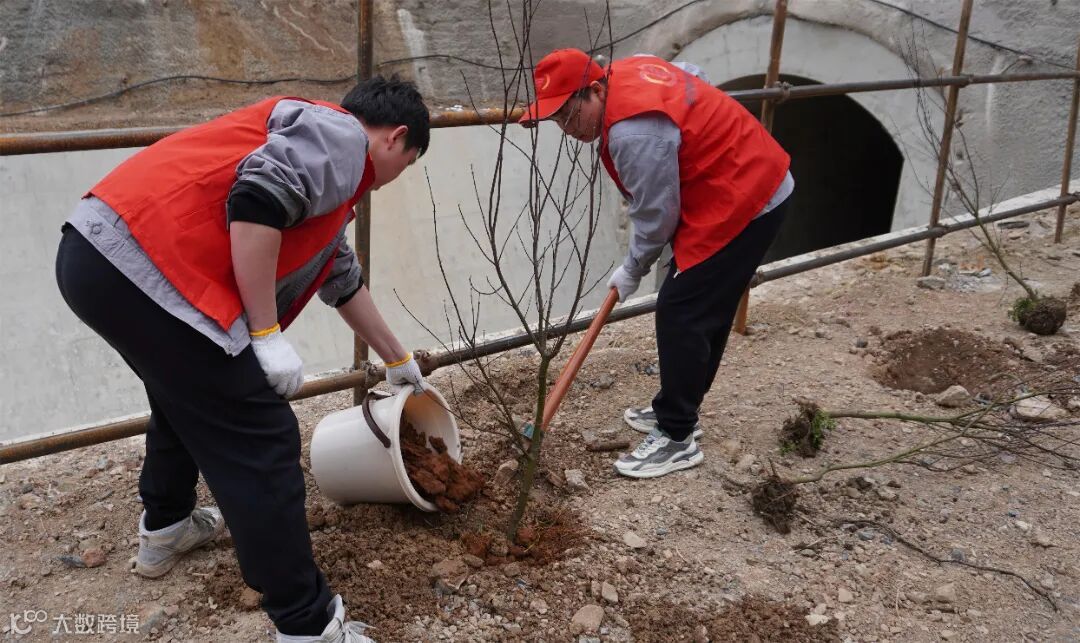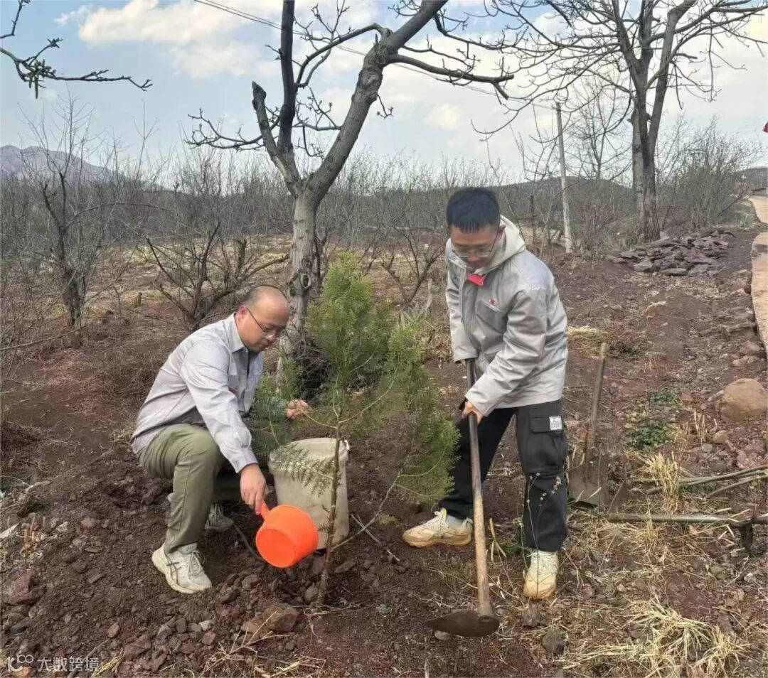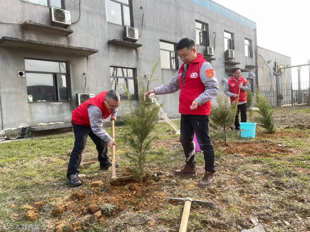 活动现场,大家齐动手,挖坑、放苗、回填、浇水,神采飞扬、充满干劲的青年员工与抽枝待发的树苗交相辉映,在初春的点点寒意中迸发出蓬勃生机。