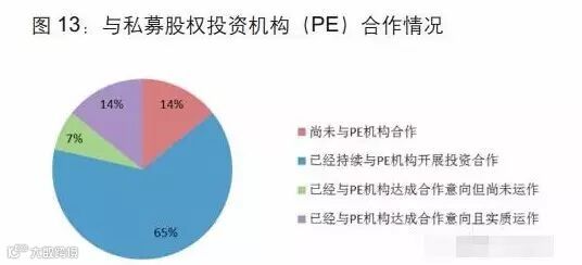 在与外部的私募股权投资机构(PE)的合作方面,86%受访企业表示,已与PE达成合作意向或已实质性开展合作。其中,65%的受访企业,包括山东鲁信、重庆渝富、深圳远致等,已持续与PE机构开展投资合作(见图13)。