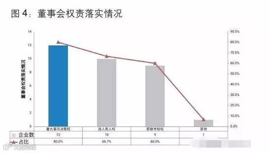 从董事会设置情况来看,除深圳远致投资公司没有设立董事会而只设1名执行董事外,其余受访企业均设有董事会,且70%企业表示,董事会结构健全,运作高效。在董事会权责落实方面,80%受访企业认为:公司董事会在重大事项决策权方面得到了有效落实,但在选人用人权、薪酬考核权方面落实情况仍不甚理想。未来要真正实现向“管资本”为主转型,仍需深入探索对平台公司董事会的有效授权(见图4)。