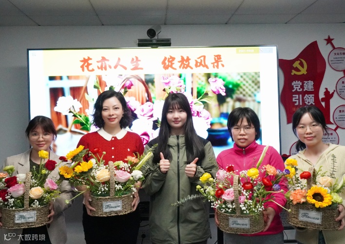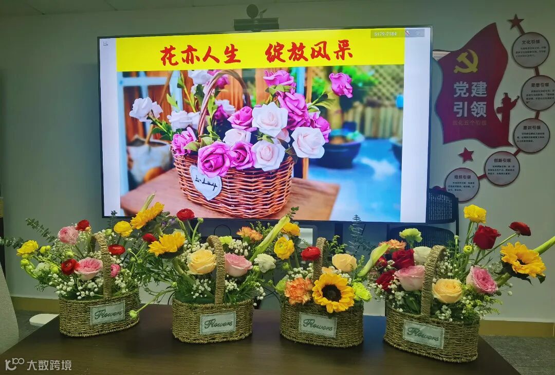 活动现场培训师生动讲解了不同花材的寓意,教授选花、剪枝、搭配技巧和插花中需要注意的主次关系等,并直观演示插花的基本方法,带领大家充分感受花艺的独特魅力。在老师的指导下,大家将玫瑰、向日葵、洋牡丹等鲜花精心修剪,错落有致排布在花篮中,做出造型各异、色彩丰富的插花作品。