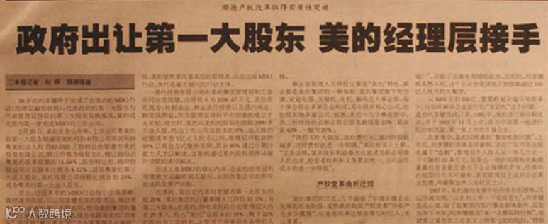 2001年初,经过反复“协商”,美的管理层收购了代表政府的第一大股东——顺德市北窖投资发展有限公司的股权,管理层成了美的真正的主人。