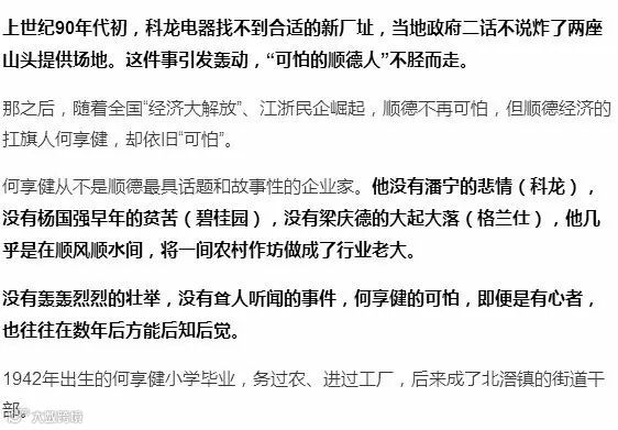 伴随着总设计师的指示,顺德开始率先进行企业产权制度改革的尝试,何享健闻讯后立马毛遂自荐,充当试验田。