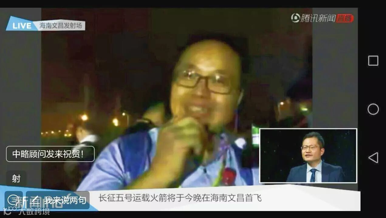 在直播现场,中略顾问的祝福伴随着“胖五”升空啦!