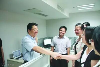 王挺革董事长与公司员工亲切握手