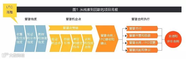 面对企业发展遇到的新挑战,华为持续聚焦于以客户为中心,聘请IBM等世界知名咨询公司担任管理咨询顾问,全力推行全业务领域的流程变革(IPD、ISC、IFS、ISD、LTC…),实现精细化运作,提升组织效率,成为客户最佳商业合作伙伴,帮助客户成功。华为利用2009年开始的LTC(线索至回款)的流程变革之机(见图1),逐步完善和夯实“铁三角”运作模式,构建立体的铁三角运作体系,以支持市场的可持续发展,提升客户全生命周期体验,实现企业的高效运营以及可盈利的增长。