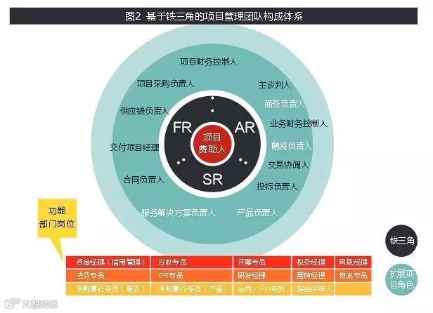 扩展项目角色成员。包括项目主谈判人、商务负责人、业务财务控制人、融资负责人、交易协调人、投标责任人、产品负责人、服务解决方案负责人、合同负责人、交付项目经理、供应链负责人、项目采购负责人、项目财务控制人以及公司内部的项目赞助人等。